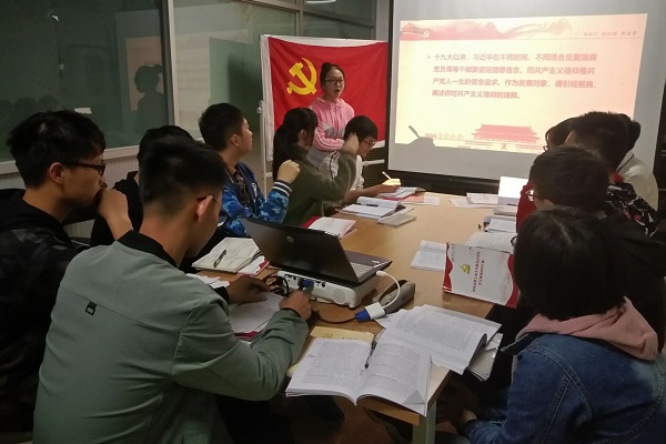 活动开始,党校班班长曹振新同学带领全体学员就十九大报告的相关内容进行简单介绍,特别是十九大报告中的“十项伟大成就”、“四个伟大”等基本内容做了详细的研读。随后,谢文珍同学结合“习近平总书记关于青年成长成才重要论述”的文件精神进行了学习。她提到:“党的十八大以来,习近平总书记对青年学生成长成才提出了一系列富有创见的新思想新观点新论断新要求,深刻回答了“培养什么样的人、如何培养人、为谁培养人”“如何认识青年学生、如何教育引领青年学生、如何发挥青年学生作用”等一系列重大问题,形成了思想深邃、内涵丰富、科学完整的思想理论体系。”