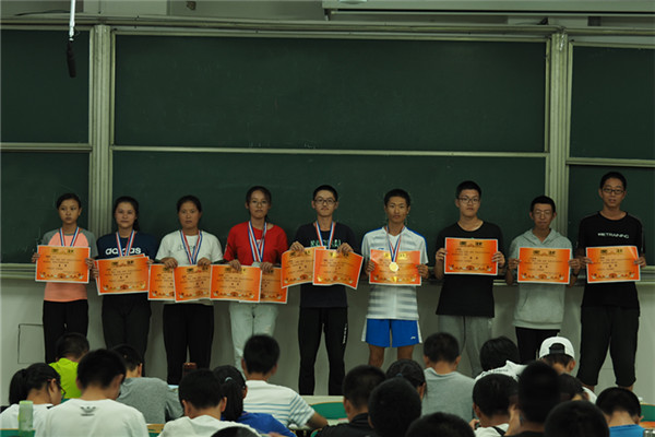 9月25日晚,院学生会体育部于6教203教室组织开展体育文化节颁奖活动,本届体育文化节共设100米、200米、400米、800米、4*100、跳高、跳远、铅球等八个田赛项目;“五人六足”、“毽球传递”、集体跳大绳、拔河等4个团体趣味项目;经过激烈角逐,最终来自材料物理17-1班的张国睿、成型17-1班的曾舒莉、材料物理18-1班的杨澍、粉体材料18-1班的田紫阳等14名同学分别斩获各类田赛项目的冠军。材料成型18-3班、材料成型18-2班、材料成型18-1班、粉体材料18-1班、无机非金属材料18-1班等五个班级分别斩获男子4*100米、五人六足、集体跳大绳、毽球传递、拔河等团体项目的冠军。
