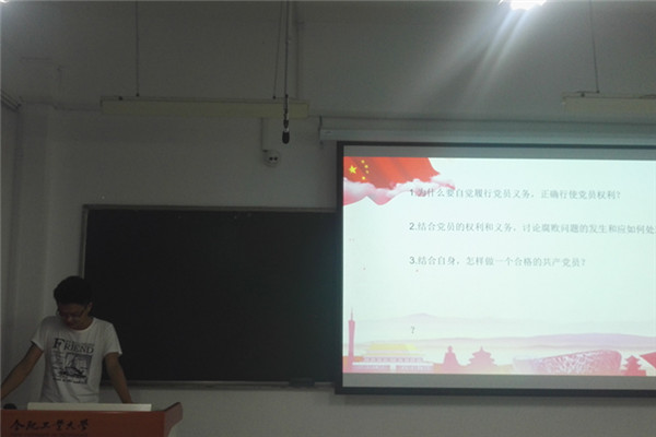 对于“结合自身如何看待腐败问题”,翟梦园同学给出了她的见解,她认为我们正处于社会转型期,社会存在很多失序问题,这种问题反映在政治上便是腐败,因此我们要加强反腐倡廉教育和廉政风险防范管理,筑牢抵御风险和拒腐防变的防线,并加强党性修养,树立正确的价值观,以此来从自身做起,遏制腐败。接着同学们纷纷发言,就“怎样做一个合格的共产党员”展开了讨论,其中刘翔宇同学说道:“理想信念是共产党人精神上的钙,能否履行好我们的义务,利用好党员的权利,这就是检测我们有没有缺钙的标准。一个理想新年坚定的党员,一个精神境界高的共产党人,他们的行动是以党员的义务为标杆的,他们会为人民的利益而行使党员的权利”。