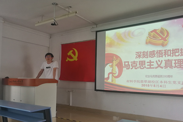 为深入学习贯彻习近平新时代中国特色社会主义思想,弘扬五四精神,5月4日上午10点,6165cc金沙总站检测中心翡翠湖校区党支部全体成员及党校第59期6165cc金沙总站检测中心党员班全体学员于翠8教309教室组织观看了习近平总书记在马克思诞辰200周年大会上的重要讲话并学习了习近平总书记在五四青年节来临之际在北京大学师生坐谈话会上的重要讲话文件和精神。