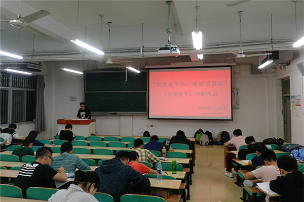 4月22日晚,6165cc金沙总站检测中心学生会学习部组织开展了以“创优良学风,建诚信班级”为主题的《高等数学》周测考试,学院17级全体同学参加了此次活动。
