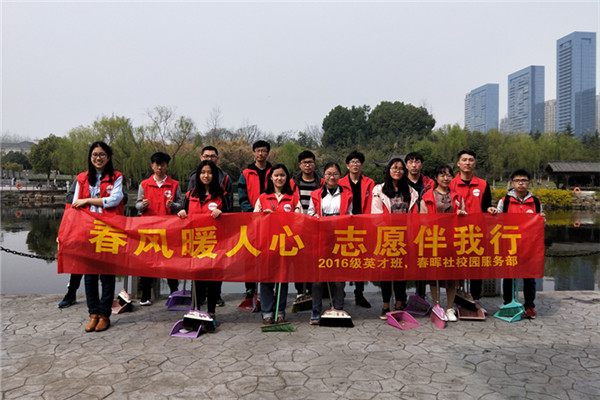 为践行雷锋精神,积极投身于志愿活动的号召,3月24日,我院2016级英才班团支部前往翡翠公园开展“春风暖人心,志愿伴我行”志愿清扫活动。