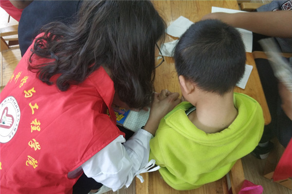 在给孩子们上课前,志愿者们通过陪孩子们玩玩具,做游戏等方式与孩子们建立信任关系。语文课上,志愿者们耐心地教孩子们握笔,手把手的教孩子们写字。美术课上,志愿者们启发孩子们画出自己最喜爱的东西,简简单单的绘画让志愿者们了解到了孩子们的心声。数学课上,为了使孩子们能够更容易的理解,志愿者们纷纷表演起了小节目,看到孩子们脸上灿烂的笑容,他们也感到无比高兴和感动。