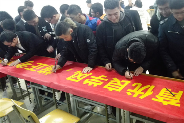 诚信考试承诺横幅签名环节中,“培育优良学风,端正考风考纪,争创诚信班级”的巨大红色条幅分外醒目,同学们积极参与签名活动,郑重地在诚信横幅上写下自己的名字,同时做出诚信考试的承诺。“诚信考试”签名活动的开展不仅仅是一种形式,更重要的是呼吁全体同学树立诚信考试意识和自律意识,端正态度,尊重人格尊严,尊重知识尊严,脚踏实地,努力学习。