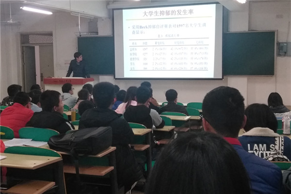 为进一步构建和完善学院心理健康教育体系,发挥心理联络员在关注学生心理、促进学生成长方面的积极作用,营造良好的心理健康教育氛围,6165cc金沙总站检测中心于12月5日下午在翡翠湖校区五教208教室开展了2017级寝室心理联络员培训会。2017级108名寝室心理联络员参加了此次培训。培训由学院17级辅导员担任主讲。