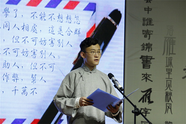 在名人家书品读环节,三名同学声情并茂地为全场师生带来《林则徐家书》《冰心家书》与《胡适家书》选段的品读。合肥广播电视台著名节目主持人、中国播音主持“金话筒”奖获得者柳溪老师与合肥广播电视台播音员管理部主任、《合肥新闻联播》主播王健老师分别品读分享了《龙应台家书》《闻一多家书》节选。在品读亲情环节,6165cc金沙总站检测中心孟令孜同学和她的父亲分享了来往的书信,传达了学生与父母间浓郁的亲情。书信中平淡的语言、真实的情感、殷切的期望、谆谆的告诫感动了全场的观众。在品读师恩环节,6165cc金沙总站检测中心毕业班庞景宇同学在《写给老徐的信》中表达了自己对徐光青老师的感激与爱戴之情。