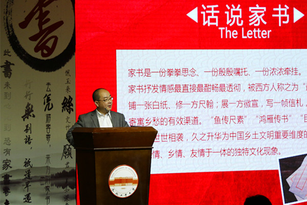 品读会上,百家讲坛主讲人、马克思主义学院副教授钱斌老师对家书文化进行解读。他通过古今通信方式的对比深刻剖析中华家书文化,并深入浅出地为同学们解读中华民族绵延几千年的家书文化。