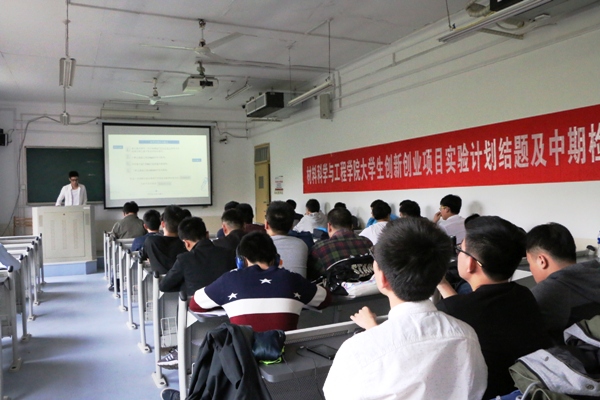 4月26日下午,6165cc金沙总站检测中心举行2016年大学生省级、校级创新创业训练计划项目结题及国家级项目中期检查答辩,54个项目按专业分四组进答辩行。