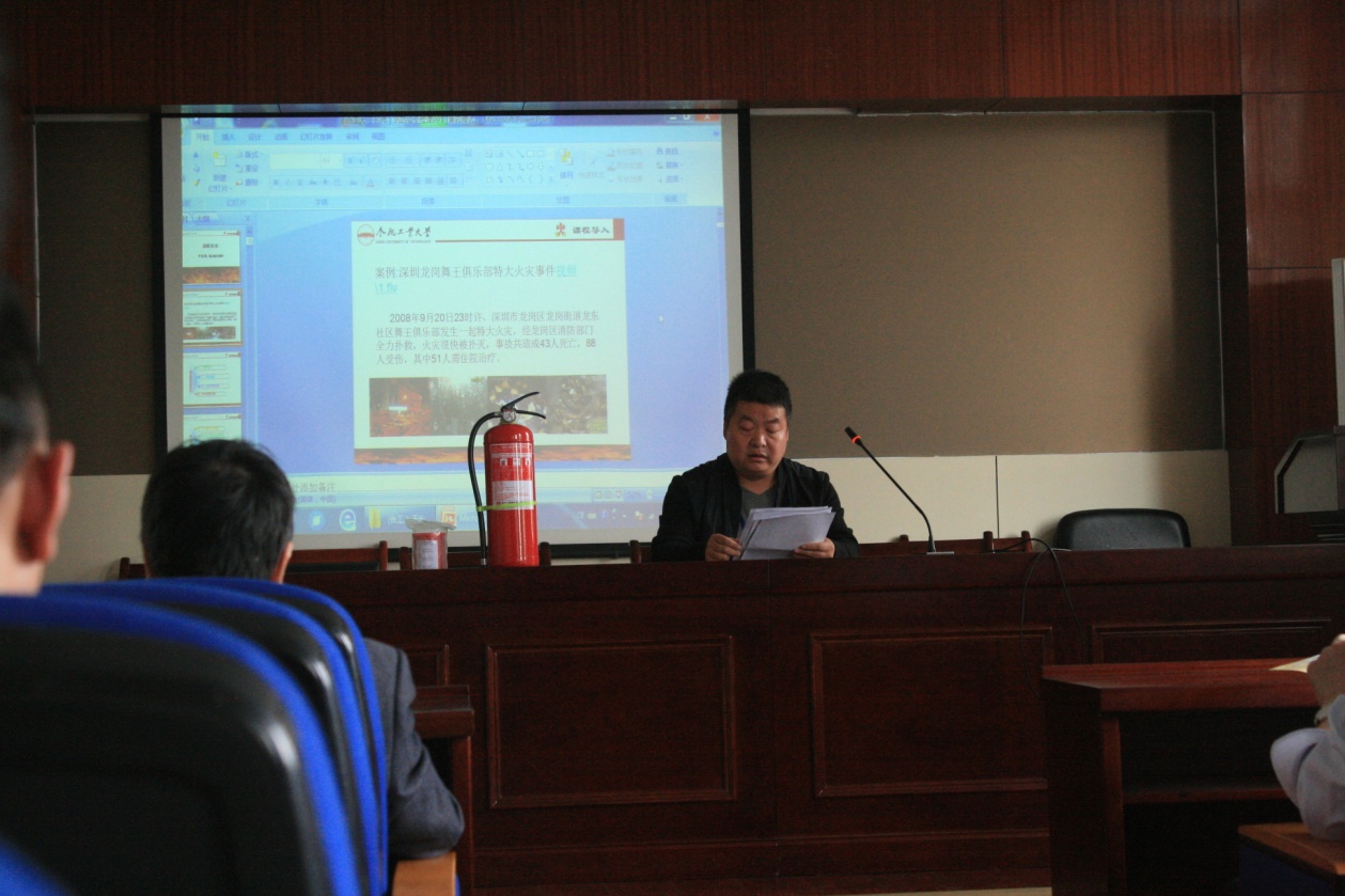 主持人首先介绍了举办这次讲座的主要目的和内容,在热烈的掌声中,校保卫办的焦峰老师上台为参加学习的研究生作了有关消防的知识普及。焦峰老师为大家讲解了基本消防安全制度,并简要介绍了相关法律法规,旨在使大家形成基本消防观念。焦峰老师结合实际案例,并配合一幅幅触目惊心的图片,一段段发人深省的视频,生动地讲解了消防安全知识,使在场同学都颇受震动;此外,焦峰老师还介绍了火灾应对措施,介绍了常规消防设施的使用方法。根据校保卫办的工作安排,6165cc金沙总站检测中心后续还将举行模拟火灾现场应对方法真人演习,进一步增强同学们在遭遇到火灾时的自救能力。