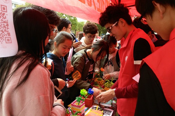 志愿者们还进行了爱心义卖,志愿者们与合肥市春芽残疾人互助协会的孩子们亲手制作的笔筒、收纳盒、项链、串珠苹果、玫瑰花、钥匙扣、毛衣链、本子等物品,吸引了许多同学驻足,挑选购买,义卖所得款项也将全部捐赠给春芽残疾人互助协会。