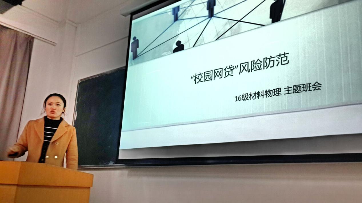 为加强学生对网络贷款的认识,辨识网络诈骗的陷阱,树立科学、理性的消费观,我院2016级材料物理专业于12月9日晚在翠八教303召开了“‘校园网贷’风险防范”主题班会。此次班会由16级辅导员左旭主持。