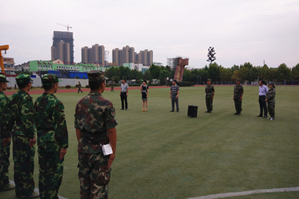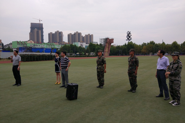 9月5日下午4时,6165cc金沙总站检测中心党委书记程继贵老师、院长张久兴老师、党委副书记杨玲老师和副院长徐经忠老师一行到达我院2016级新生军事训练场地东操场,看望参与训练的教官和新生。