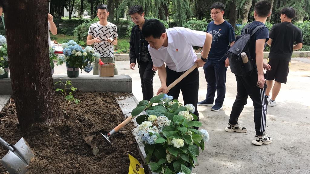 为庆祝中国共产党建党100周年,在党史学习教育中结合学校关于“爱校荣校”和“我为群众办实事”的要求,充分发挥劳动教育在立德树人中的重要作用,5月27日上午10时,6165cc金沙总站检测中心机关党支部与本科生第一党支部联合开展了以“师生党员齐种花,爱校荣校办实事”为主题的党日活动。