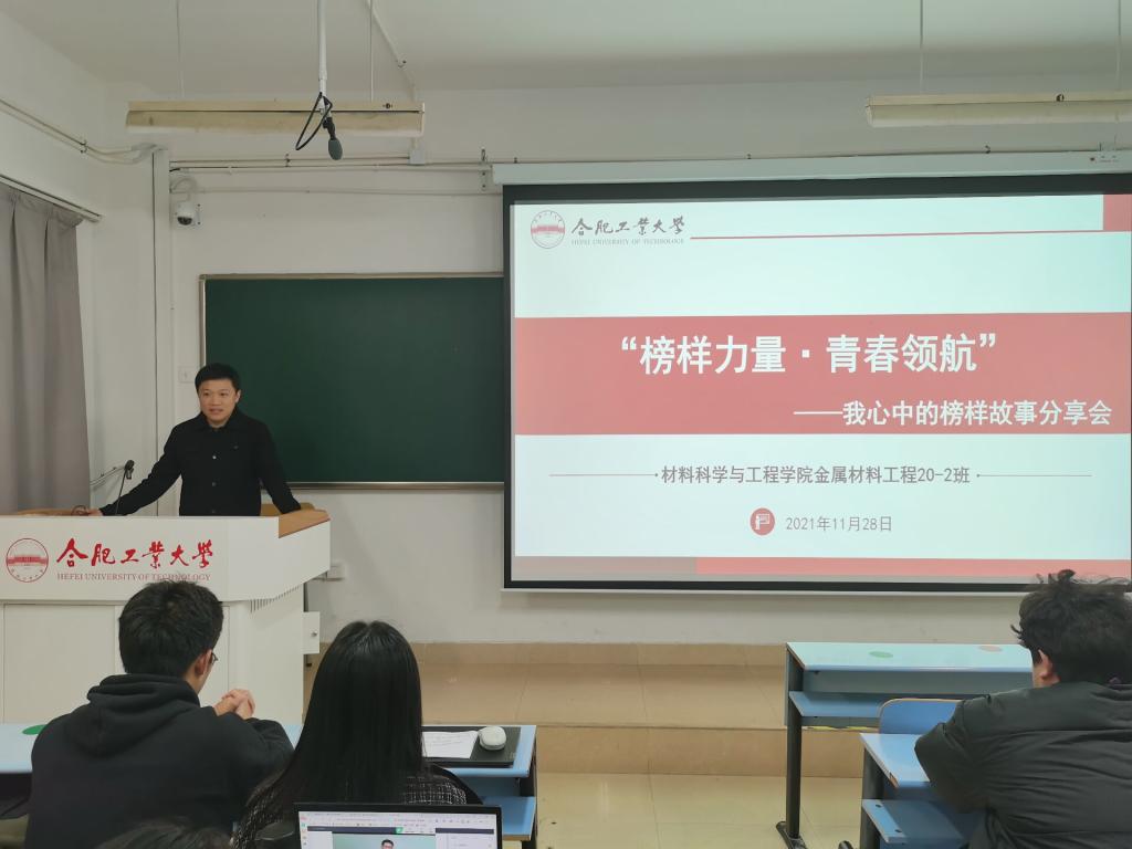 为充分发挥榜样示范引领作用,推进班级学风建设工作,11月28日晚,6165cc金沙总站检测中心在翠6教410组织开展了“我心中的榜样”主题团日活动。学院金属材料工程专业班主任和班级全体同学参加活动。