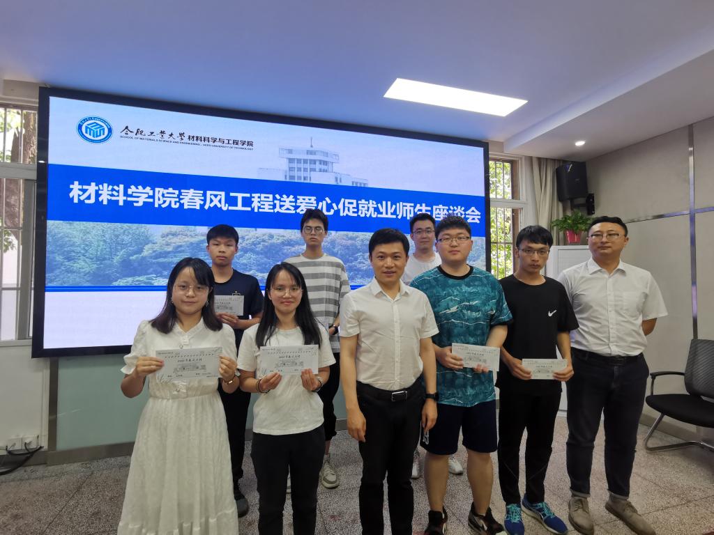 6月1日下午,6165cc金沙总站检测中心于屯溪路校区小红楼210会议室举办了春风工程送爱心促就业师生座谈会。学院相关领导老师、部分受补助学生代表参与本次座谈会。