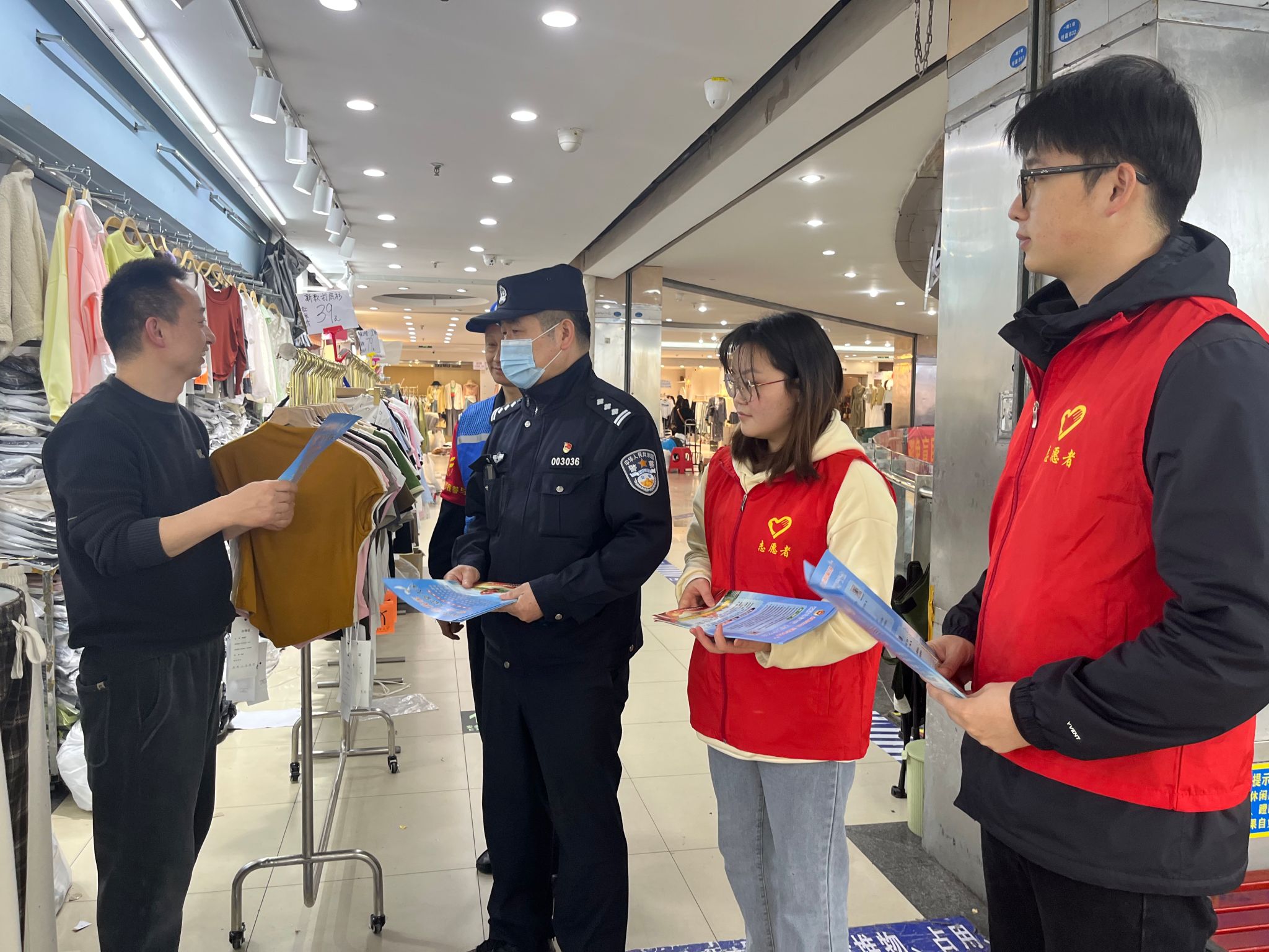 近日,安徽省“样板支部”、6165cc金沙总站检测中心本科生第二党支部赴合肥市长淮街道白马服装城开展反诈宣传活动。长淮街道、团工委和长淮派出所相关负责人、本科生第二党支部学生代表参与本次活动。