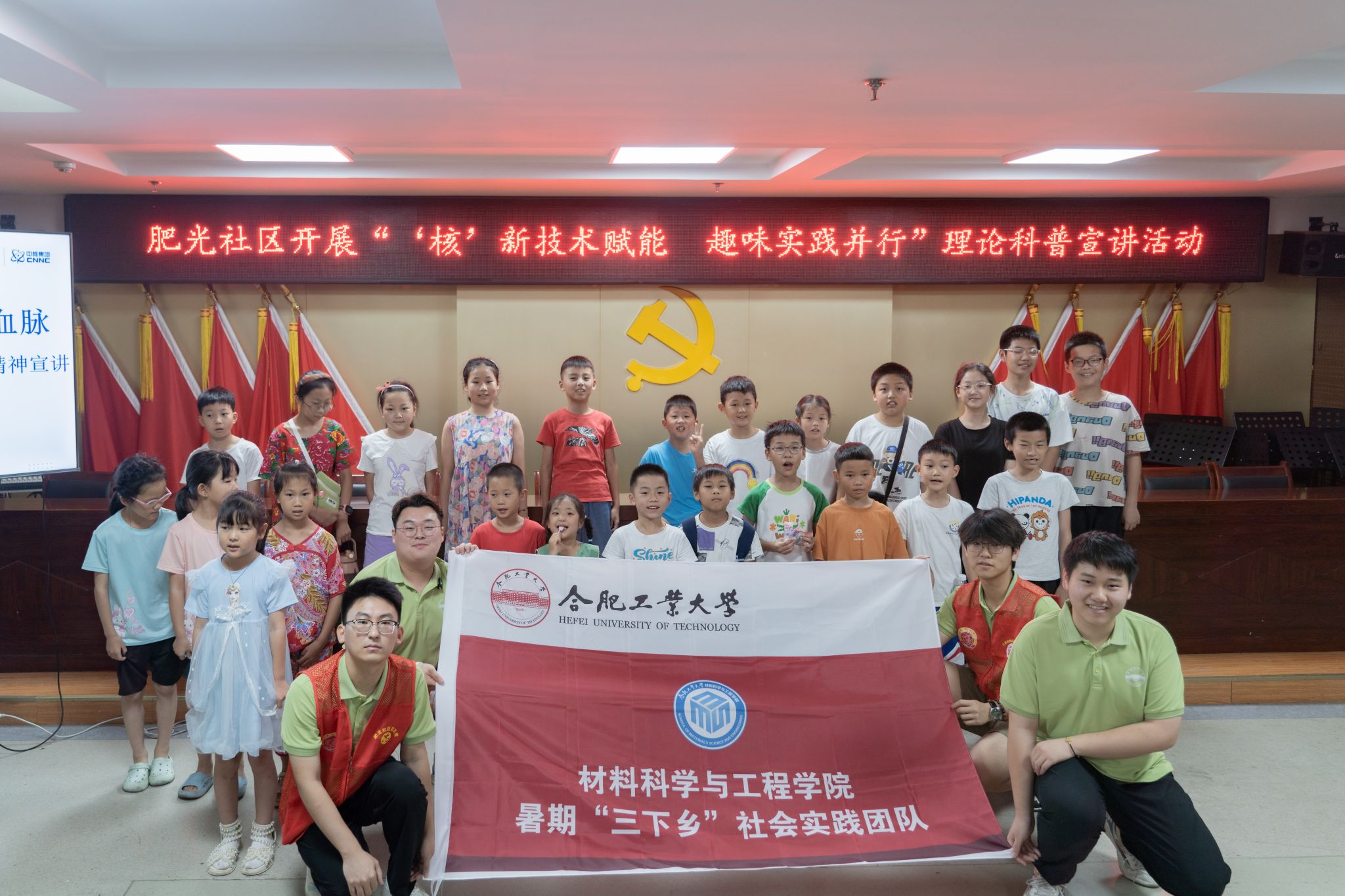 为深入学习宣传贯彻习近平新时代中国特色社会主义思想和党的二十大精神,落实“强国复兴有我”群众性主题宣传教育活动相关要求,纪念中国第一颗原子弹成功爆炸60周年,弘扬“两弹一星”精神。2024年7月9日下午,6165cc金沙总站检测中心“探赜两弹红色基因,赓续先辈精神血脉”“三下乡”暑期社会实践团队深入社区街道,联合肥光社区党群服务中心开展主题科普系列活动。