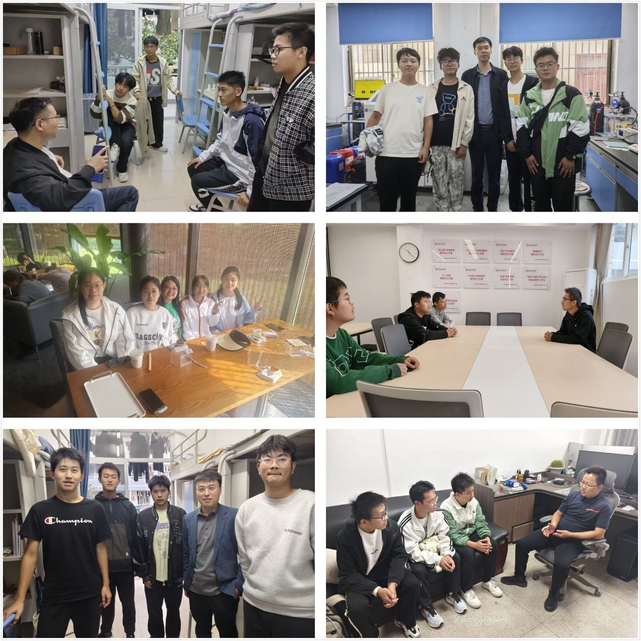 活动前期,学院通过遴选为2024级全体新生配备了“育才导师”,通过搭建线上和线下交流平台,促进导师和新生交流互动。活动中,同学们在寝室、学生社区、实验室、会议室和工作室等各场域分别与导师开展交流互动,帮助新生加深对专业的了解和认识,激发学生的专业学习兴趣,强化学生专业思想教育。同时围绕生涯规划、学业规划、创新创业等内容进行了深入交流探讨。