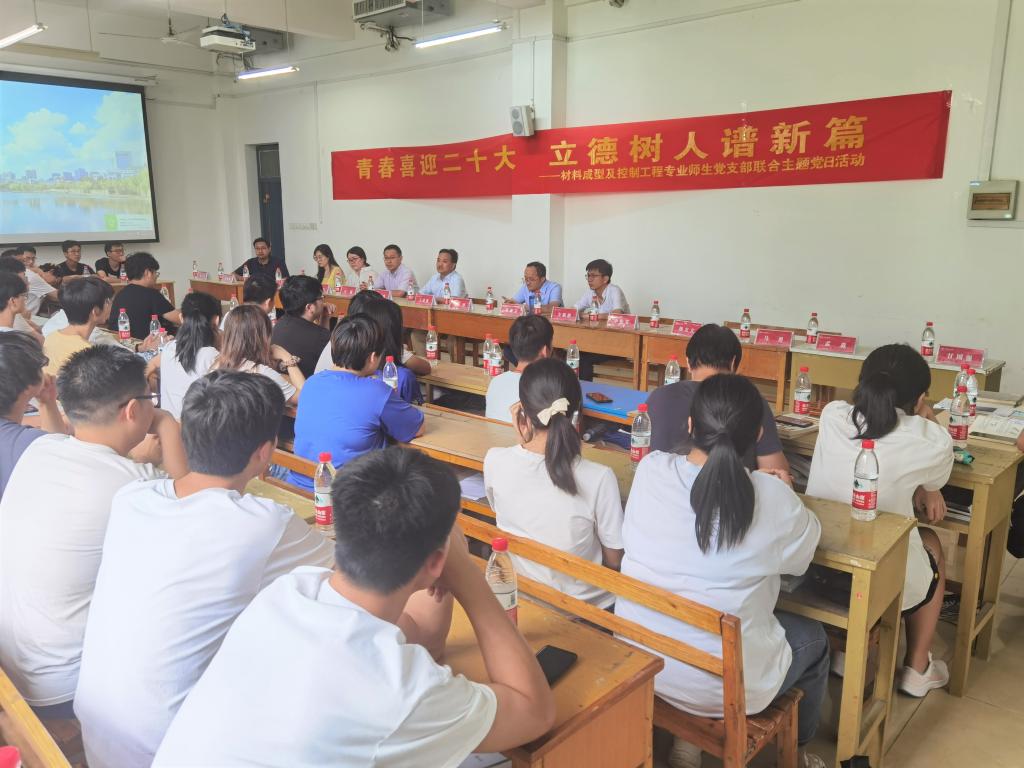 6月29日下午,6165cc金沙总站检测中心在翡翠湖校区综合楼302会议室和三教309举办“青春喜迎二十大,立德树人谱新篇”师生党支部联合主题党日活动。学院金属材料工程系、材料成型及控制工程系全体党员教师和金属材料工程专业、材料成型及控制工程专业2020级全体同学分别参加本次活动。