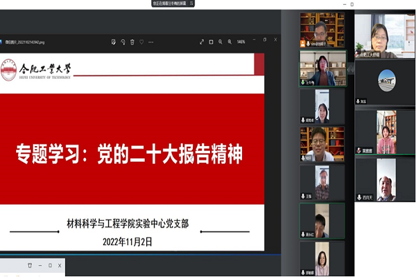 11月2日下午,受疫情影响和疫情防控要求,6165cc金沙总站检测中心实验中心党支部组织开展了线上党的二十大报告精神专题学习研讨活动。