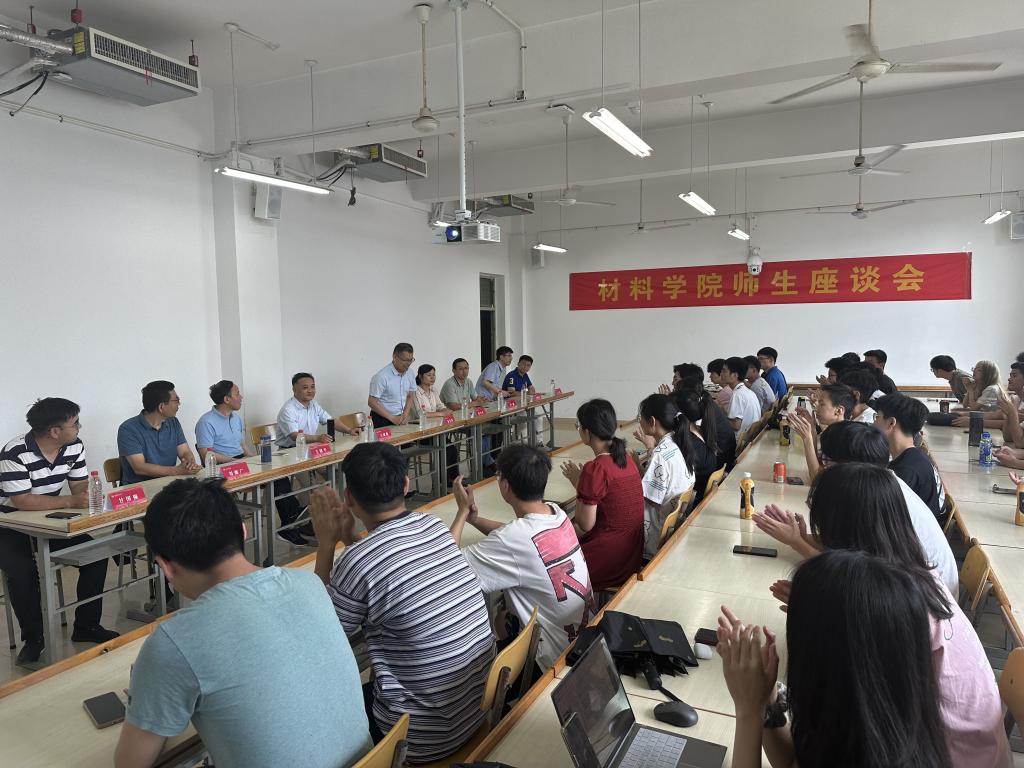 6月15日下午,6165cc金沙总站检测中心组织开展师生交流会。材料成型及控制工程专业教师代表赴翡翠湖校区,与2022级成型专业全体本科生就专业发展、本科阶段规划、就业以及考研等事项进行了交流和座谈。